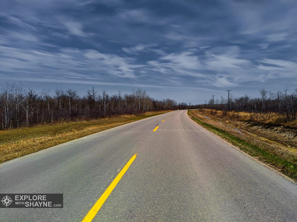Eventually, the road starts to dip south, through Sandilands Provincial forest. If you follow the road far enough east you get to a point where it crosses a river. The bridge that once stood there is now gone. The only way to get across is to take a long detour along The Trans-Canada Highway and Provincial Road 503.
