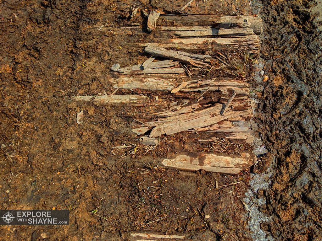 On some parts of Dawson Trail, especially those further east, remains of the corduroy road can still be seen.